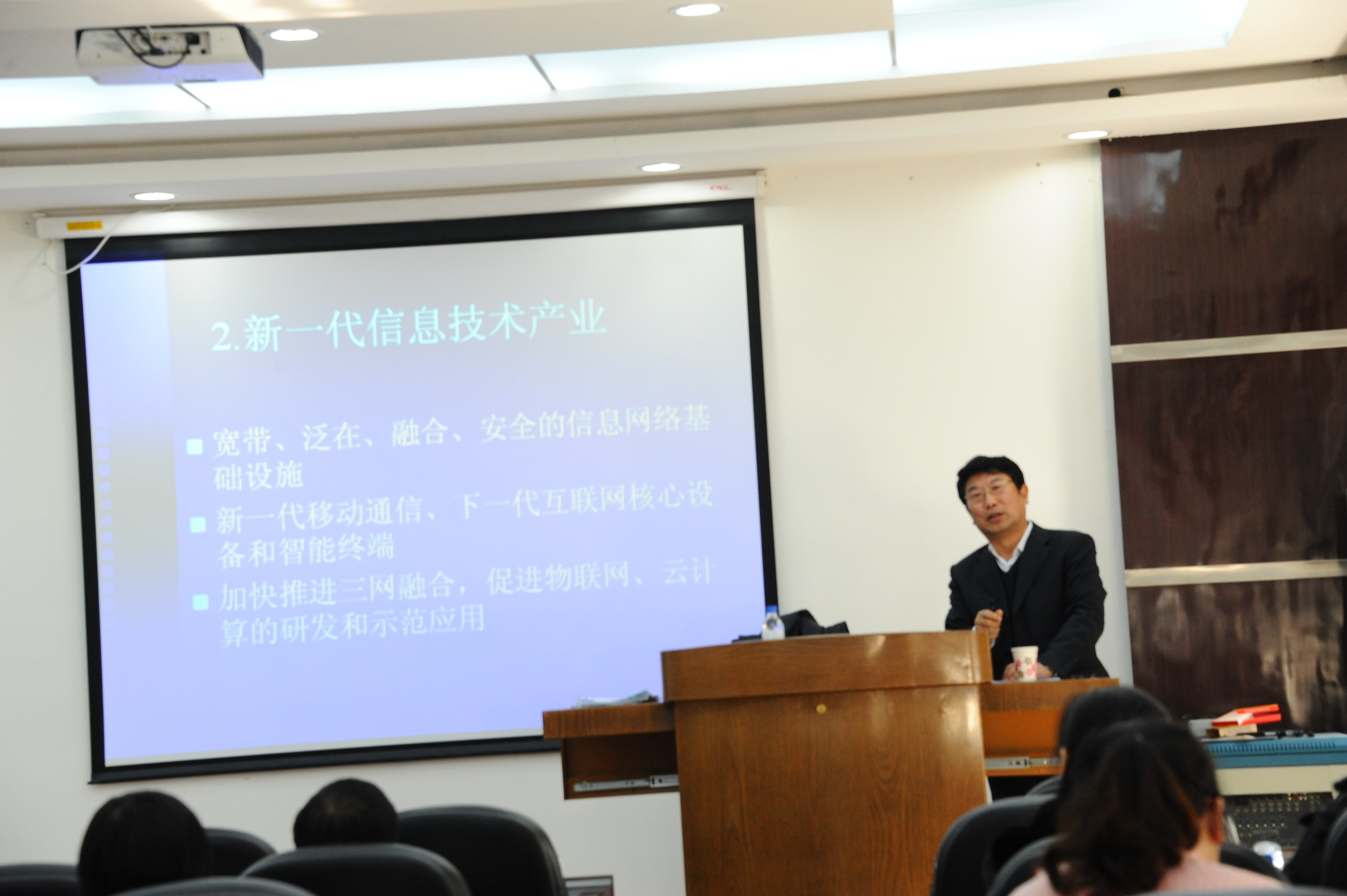 25日,吉林大学产业处处长常书国老师为我们全体学员进行为期一上午的讲座《战略性新兴产业与企业自主创新》,常老师的讲座分为三个部分:战略性新产业提出的背景、战略性新产业所涉及的七个领域、国家的发展目标和具体措施。首先常老师指出,发展战略性新兴产业对经济社会全局和长期发展有着重要的战略意义,尤其是在21实际新技术革命和产业革命的转折点上,加快培育和发展战略性新兴产业具有重要战略意义。然后,常老师又逐一的向学员介绍了包括节能环保、新一代信息技术、生物、高端装备制造、新能源、新材料、新能源汽车在内的新兴产业的发展和未来动向。最后,常老师结合实际经验,向学员介绍了如何推进战略性新兴产业发展。