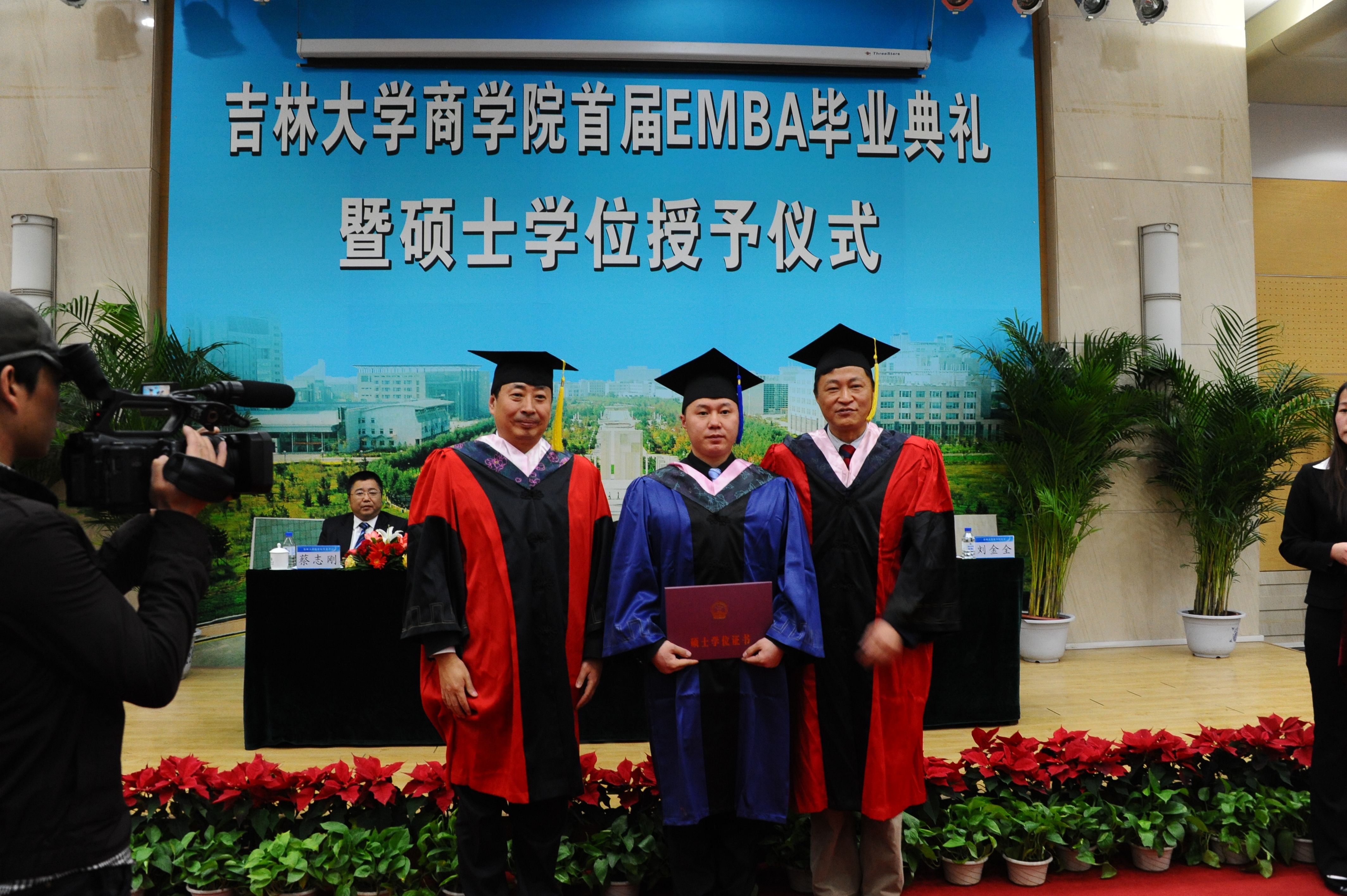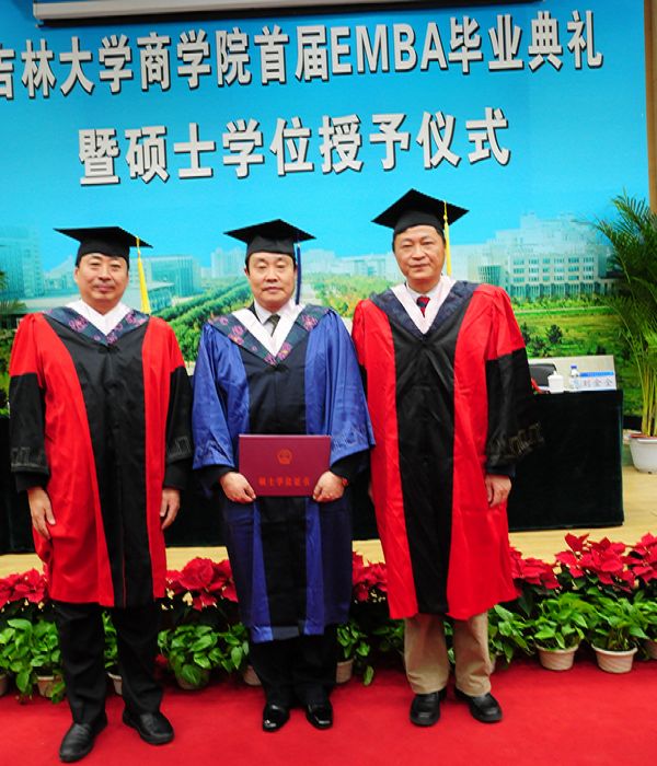 2012年3月10日,商学院首期EMBA毕业典礼暨硕士学位授予仪式在吉林大学中心校区东荣大厦二楼报告厅成功举行。吉林大学党委书记陈德文、副校长吴振武,商学院院长刘金全,全国MBA教育指导委员会委员、吉林大学数量经济研究中心主任、商学院学位委员会主任张屹山,副院长沈颂东,庞晓波,张世伟,金晓彤等应邀出席了仪式。部分指导教师、主讲教授及学员家属等也参加了仪式。典礼由商学院党委书记蔡志刚主持。