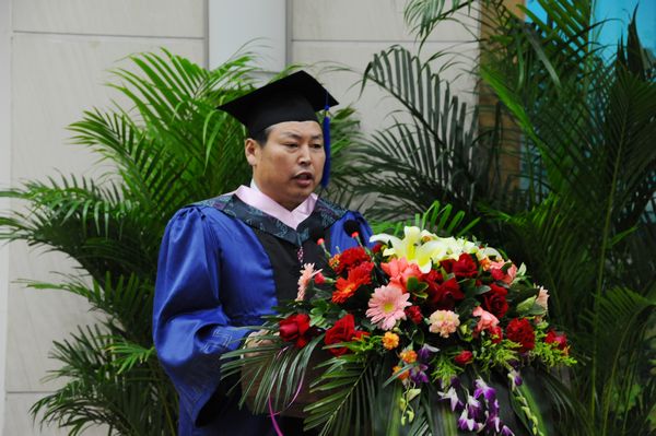 刘金全教授在致辞中,感谢陈书记和吴校长及学校各相关职能部门对商学院EMBA教育的一贯支持和关心,感谢各位EMBA主讲教师对EMBA教育的辛勤付出,祝贺各位学员圆满完成学业获得硕士学位。他说两年多来,各位学员秉承吉林大学“求实创新 励志图强”的校训,坚持学习、敢于学习、善于学习,树立了吉林大学商学院首届EMBA的优秀典范并彰显了中国当代企业家的优秀品格。他说首届EMBA学员为商学院和后继的学弟们留下了很多值得记忆和仿效的举措,大家投资成立的吉大明德公司、创立的联合会和捐赠的奖学金等必将为发展和提高EMBA办学水平起到极其深远的影响。他衷心希望各位学员毕业后能继续建功立业、锐意进取、不辱使命。