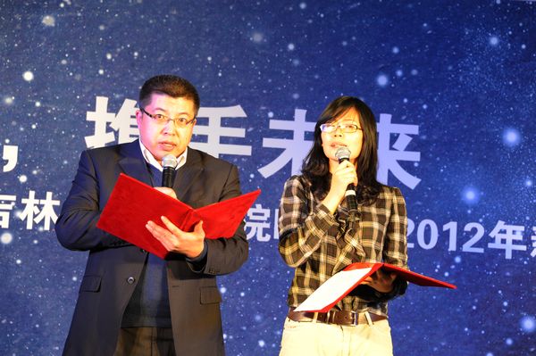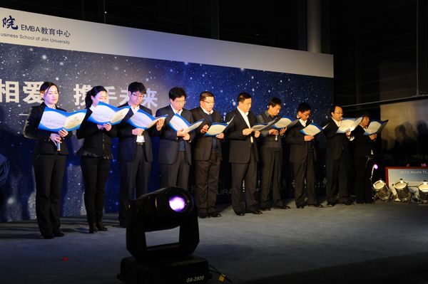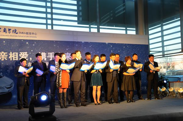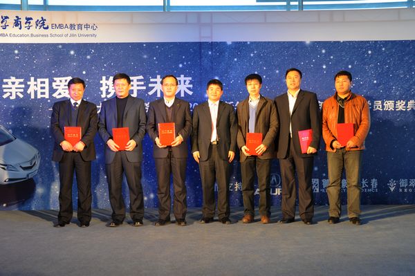 2011年12月17日下午, 吉林大学商学院EMBA教育中心在Acura长春长沈路店举行了主题为“相亲相爱,携手未来”的 2012年新年联欢会暨2011年度优秀学员颁奖典礼活动。活动由2010级EMBA春季2班学员徐华南、2011级EMBA春季班学员李韩鹏友情主持。商学院院长刘金全、副院长张世伟、金晓彤、李宝永等应邀出席活动。