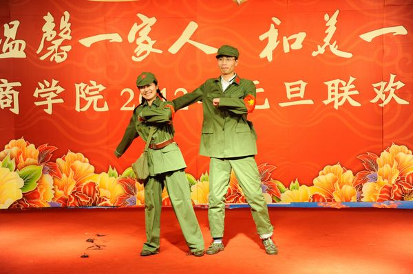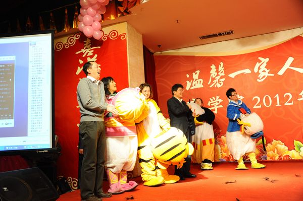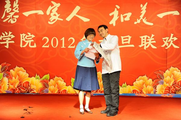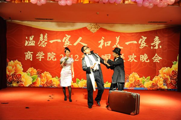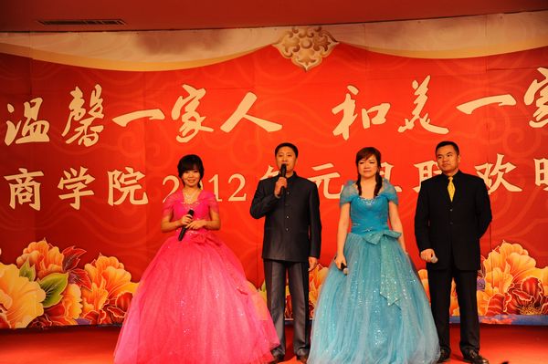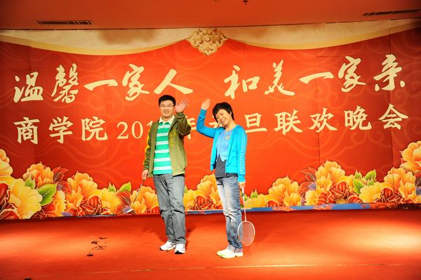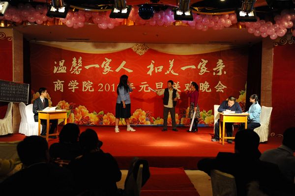 2011年12月28日下午3点,在风光旖旎的新立湖森林旅游风景区吉林省自然村,主题为“温馨一家人,和美一家亲”,如春晚一样精心策划的商学院2012年元旦联欢晚会如期举行。学院领导班子全部成员和大多数教职工安排好其他工作准时来到现场。联欢会由刘志富担任总导演,林晶、赵晓波担任副导演,由林晶、丁志国、宋玉臣 、王春艳老师担任主持。