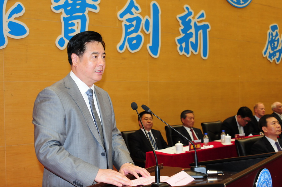 香港捷成洋行有限公司董事总经理、吉林大学客座教授海宁先生代表来宾致辞。海宁教授向吉林大学商学院创建20年来取得的成绩表示衷心的祝贺,并希望与吉林大学商学院保持合作,共谱华美乐章。