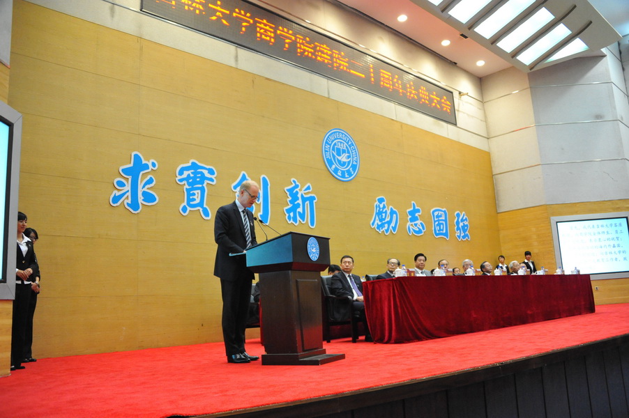 二十年岁月如歌,砥砺前行;二十年薪火相传,继往开来。20周年的庆典既是对吉林大学商学院辉煌历史的检验,也是吉林大学商学院新的跨越的开始。吉林大学商学院将承传统之精华,创未来之辉煌,以全新的姿态迎接经济高速发展带来的机遇与挑战,以“走开放式国际化道路,全面提升人才培训质量”为办学宗旨,立足学术前沿,开拓进取,勇于担当,为实现中华民族伟大复兴的中国梦而奋力拼搏!